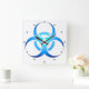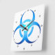 Biologische Biogefährdung Symbol blau mit Punkten Quadratische Wanduhr