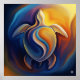 Hochwertige Grafik einer biomorphen Schildkröte, die Flüssigkeit, kurvenreiche Formen und fette, kontrastreiche Farben verwendet, um das Tier zu repräsentieren. Die Schildkrötenform hat minimale Details und fügt sich nahtlos in den lebhaften, wirbelnden Hintergrund ein.