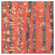 Ein Gemälde eines Birken- oder Aspenwaldes im Herbst in kräftigen Rot-, Orange- und Gelbtönen.