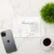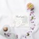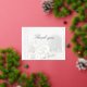 Eine silberne Dankeschön-Karte mit einem weichen, undurchsichtigen Birkenwald-Hintergrund mit den Worten "Danke" in Silberfolie. Auf der Rückseite der Karte befinden sich die gleichen Hintergrundbilder mit einer schriftlichen Stimmung für Ihre Gäste, gefolgt von der Abmeldung Ihrer Namen.