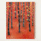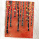 Moderne abstrakte Landschaftsmalerei eines Birken- oder Aspenwaldes im Herbst in kräftigen Rot-, Orange- und Gelbtönen. Originelle Kunst von Nic Squirrell.