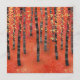 Moderne Landschaftsmalerei eines Birken- oder Aspenwaldes im Herbst in kräftigen Rot-, Orange- und Gelbtönen.