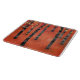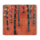 Eine moderne Landschaftsmalerei eines Birken- oder Apfelwaldes in kräftigen Rot-, Orange- und Gelbtönen.