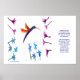 Poster mit dem schönen Kolibri, der frei von Blume schwimmt. Umfasst die Legende des Kolibri und wäre ein großartiges Geschenk für Vogelliebhaber. Diese Blumenvogelkunst stammt aus meinem originalen Glasgemälde. ©Annabel Potter