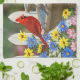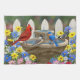 Eine Frühlingssonne mit bunten Vögeln und Blume rund um einen hübschen Wasserbrunnen Vogelbad.