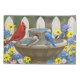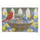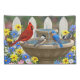 Eine Frühlingssonne mit bunten Vögeln und Blume rund um einen hübschen Wasserbrunnen Vogelbad.