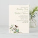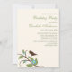 Bird birthday collection featuring a brown bird on a tree branch amidst leaves and bright blue flowers
