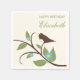 Bird birthday collection featuring a brown bird on a tree branch amidst leaves and bright blue flowers