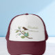 Bird birthday collection featuring a brown bird on a tree branch amidst leaves and bright blue flowers