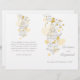 Niedliche Vogelpaarkunst zeichne von einem offenen Vogelkäfig, der an einem blühenden Frühlingsbaum mit Herz hängt. Modernes Hochzeitsdesign im Vogelkäfig - romantisches Hochzeitsfest-Set. Hübsche, helle Farbtöne, gelb und warm grau auf weißem Papier. Bearbeiten Sie dieses Hochzeitsprogramm mit Ihrem eigenen Namen, Terminen, Zeremoniell, Begleitern von Hochzeitsfeiern und vielen Dank. Ein elegantes Programm ersetzt den Beispieltext einfach durch Ihre Hochzeitsinformationen und faltet die Programme bei Lieferung in der Mitte. Einzigartiges zeichn und Design von Sarah Trett.