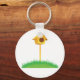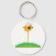 Dieses Design ist ein Vogelhaus. Das Vogelhaus befindet sich auf einem Pfosten inmitten eines grünen Graspflasters. Dieses Vogelhaus-Design sieht großartig auf diesem Schlüsselanhänger aus