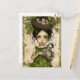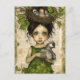 Eine bezaubernde Puppe mit einem Vogelnest auf ihrem Kopf und ihr Hausvogel in ihren Armen AI generierte eine gemischte Mediencollage mit Vintagen Ephemerien und Aquarellelementen