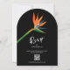 Eine Hochzeitseinladung mit Arkaden bietet einen wunderschönen exotischen Tropenvogel mit paradiesischer Aquarell-Blume auf schwarzem Hintergrund mit Ihren Details auf der Vorderseite und UAWG QR-Code auf Ihrer Hochzeitswebsite auf der Rückseite. Bestellen Sie INSTANT DOWNLOAD und oder PRINTED oder beides! PASSENDE Artikel in unserer Sammlung.