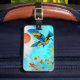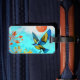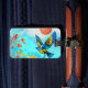 Dieses wunderschöne Design zeigt einen blauen und goldenen Vogel, der eine Landung auf einem goldenen Baum mit einem schönen Himmel mit vielen blauen Farben und einer kühlen orangen Sonne.