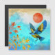 Dieses wunderschöne Design zeigt einen blauen und goldenen Vogel, der eine Landung auf einem goldenen Baum mit einem schönen Himmel mit vielen blauen Farben und einer kühlen orangen Sonne.