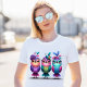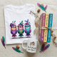 Beginnen Sie Ihren Kleiderschrank mit diesem T - Shirt mit dem farbenfrohen Bird Trio, in dem drei fantastisch gefiederte Freunde, die zum Eindrücken verkleidet sind, in bezaubernder Weise illustriert werden! Mit lila, rosa, aquamarinen und blauen Farbtönen sorgen diese modischen Vögel für ein angenehmes und skurriles Ambiente. Ideal für Tierfreunde, Vogelliebhaber oder alle, die sich an einzigartigen und künstlerischen Kleidung erfreuen.