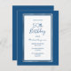 vorne: Klassischer blauer Hintergrund mit einem silberfarbenen und weißen Imitat. Einfach und elegant! Vorlagen für einen Namen und Party Details. Der Name und der Text: 50. (oder jedes Alter) Geburtstag werden mit einem handgeschriebenen Stift geschrieben, blaue Buchstaben. Ideal für einen Winter-, Frühlings- oder nautischen Sommer Geburtstagsparty! Zurück: Klassisch blauer Hintergrund. Tipp: Wenn Sie es nicht so gewollt haben, dass es wie eine Postkarte aussieht, klicken Sie auf Anpassen, gehen Sie auf die Rückseite und entfernen Sie den Trenner und posten Sie die Briefmarke.