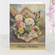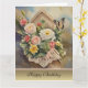 Ein schönes Bouquet in einem Vogelhaus wünscht Ihnen einen schönen Geburtstag. Im Inneren finden Sie ein Vers der Feier und Wünsche für Glück, Liebe und Lachen.