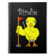 Birdie in lockigem Text mit einem gelben Küken, das einen Golfclub hält, und die Fahne in einem Golfplatz ist ein lustiges Geschenk-Design für Golfer.