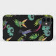 Farbenfrohe Vögel, kleine Kolibris, zeichnend digitale Kunst, fliegen frei unter grünen Blätter. Schönes Muster für Kunst- und Vogelliebhaber. Benutzerdefinierte Hintergrundfarbe.