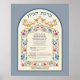 Birkat Habayit Hebrew English Floral on Blue Art Poster