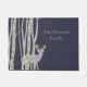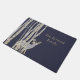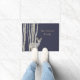 Einladende Türmatte aus dunkelschieferblau, mit Grafiken von halb transparenten Birken- und Hirschbäumen. Tan benutzerdefinierter Text kann personalisiert sein, um zu lesen, was Sie gewollt.