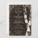 Abend-Lichter blicken um die rustikalen Birkenbäume auf diese elegante und rustikale Hochzeitseinladung in neutraler Bronze mit goldfarbenem Glanz.
