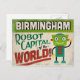 Eine lustige Reisepostkarte aus Birmingham Alabama mit einem freundlichen Roboter mit lustigem Retro-Stil, der sagt: "Birmingham, Robot Hauptstadt of the world!"