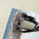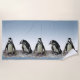 Birnen aus schwarzem und weißem Pinguin auf blauem Strandtuch