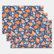 Birnen und Blüten in Orange und Blau Geschenkpapier Set