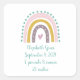 Rainbow-Design niedliche BabyGeburtsstatistiken quadratische oder runde Aufkleber, die Sie mit Babynamen und Geburtsstatistiken personalisieren können. Großartiges Geschenk für die junge Mutter.