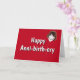 Weißer Ballon mit Haaren, Augapfel und Lächeln auf einem roten Hintergrund zum allgemeinen Geburtstag. Die Hintergrundfarbe kann geändert werden.