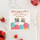 Fun, festliche Geburtstagsnapkins mit rosa, goldgrünen und goldfarbenen Ballons, Bänder und Konfetti, Ihre 2 Fotos und 2 Zeilen Text nach Maß. Farbenfroh, gepflegt und klassisch - perfekte Geburtstagservietten für Kinder und Erwachsene.