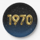 Goldene Jahrtagsballons für 1970 Geburtstag auf schwarzem und blauen Hintergrund mit Sternen.