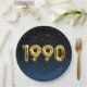 Goldene Jahrtagsballons für 1990 Geburtstag auf schwarzem und blauen Hintergrund mit Sternen.