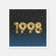 Goldfolienballons für 1998 Geburtsjahr auf Gradientenschwarz und blau Hintergrund mit Nachtstars für Geburtstagsparty.