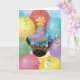 Herzlichen Glückwunsch zum Geburtstag mit diesem niedlichen Design mit einem lächelnden, Party-Hut-Mops Welpe umgeben von bunten Ballons, Konfetti und Streamern.