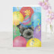 Herzlichen Glückwunsch zum Geburtstag mit diesem Design, das ein niedliches, Party tragendes Scottish Terrier Welpe, umgeben von bunten Ballons, Konfetti und Streamern.