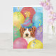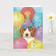 Herzlichen Glückwunsch zum Geburtstag mit diesem niedlichen Design mit einem niedlichen, Party-Hut tragenden Welsh Springer Spaniel Welpe umgeben von bunten Ballons, Konfetti und Streamern.