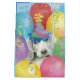 Herzlichen Glückwunsch zum Geburtstag mit diesem Design, das ein niedliches, Party tragendes Weimaraner Welpen, umgeben von bunten Ballons, Konfetti und Streamern.