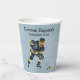 Eine energische und farbenfrohe Illustration eines Hockeyspielers mitten in der Action, die die Begeisterung für ein Geburtstagsfest auf der Piste perfekt einfängt. In einer fett schwarz-gelben Uniform mit einem roten Fleck auf den Skaten, konzentriert sich der Spieler intensiv auf den Puck, bereit, den nächsten großen Zug zu machen. Eine dynamische Hommage an Sport, Teamwork und Feiern.