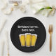 Brillen aus Bier zum Geburtstag auf schwarzem Hintergrund. Text kann bearbeitet werden. Die Hintergrundfarbe kann geändert werden.