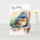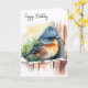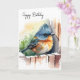 Niedlicher Wasservogel auf einem Holzzaun zum Geburtstag. Der Text ist bearbeitbar.