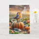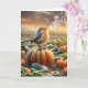 Ein kleiner Vogel auf einem Kürbis singt melodiöse musikalische Noten, die visuell in die Luft schwenken. Text kann geändert werden.