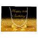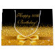 Elegante, klassische, glamouröse und feminine Party Geschenktasche. Ein goldfarbenes Band und Bogen. Schwarzer Hintergrund. Mit dem Text: Happy 80. Geburtstag!
