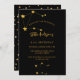 Für eine elegante 21. Geburtstagsparty (oder jedes Alter). Ein schwarzer Hintergrund. Dekoriert mit Sternen und der Sternkonstellation von Capricon. Personalisieren und fügen Sie einen Namen, Party-Details. Der Name wird mit einem handgeschriebenen Stilskript geschrieben