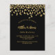 Modernes, elegantes und einladendes Hotel. Ein schwarzer Hintergrund mit goldenen Imitaten Konfetti. Personalisieren und fügen Sie einen Namen und Details.