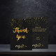 Eine schwarze Hintergrundfarbe und goldener Konfetti Regen. Vorne eine handgeschriebene Stilschrift und der Text: Danke! und ein blumengeschmücktes Imitat Golddekoration. Zurück: Personalisieren Sie Ihre Dankeschön-Anmerkung und Namen/Namen