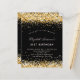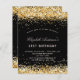Eine moderne, stilvolle und glamouröse Einladung für eine 21. Geburtstagsfeier (oder jedes Alter). Ein schwarzer Hintergrund mit Imitaten vergoldeten Glitzer Staub. Der Name ist mit einem modernen handgeschriebenen Stilskript geschrieben. Personalisieren Sie Ihre Party-Daten und fügen Sie sie hinzu.