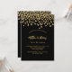 Modernes, elegantes und einladendes Hotel. Ein schwarzer Hintergrund mit goldenen Imitaten Konfetti. Personalisieren und fügen Sie einen Namen und Details.